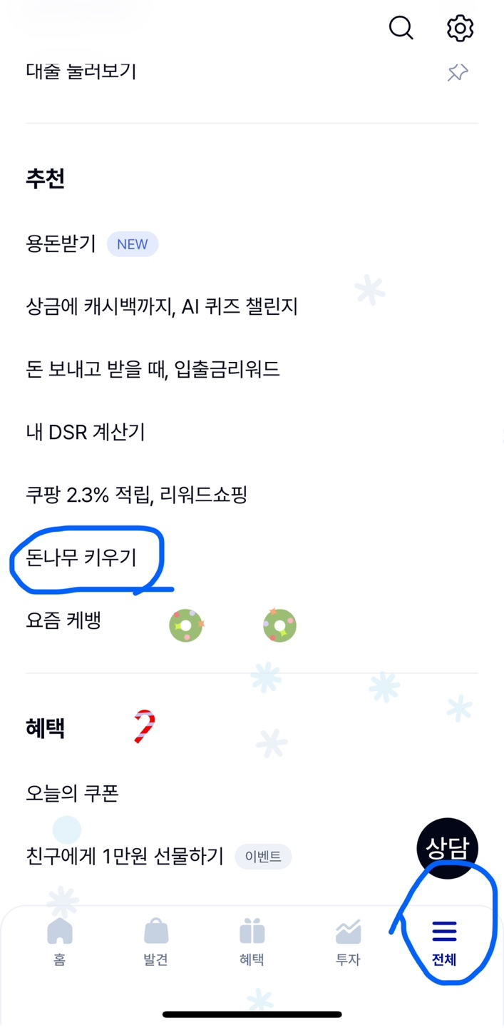 - 앱 메인 화면에서 ‘돈나무 키우기’를 클릭하면 시작!